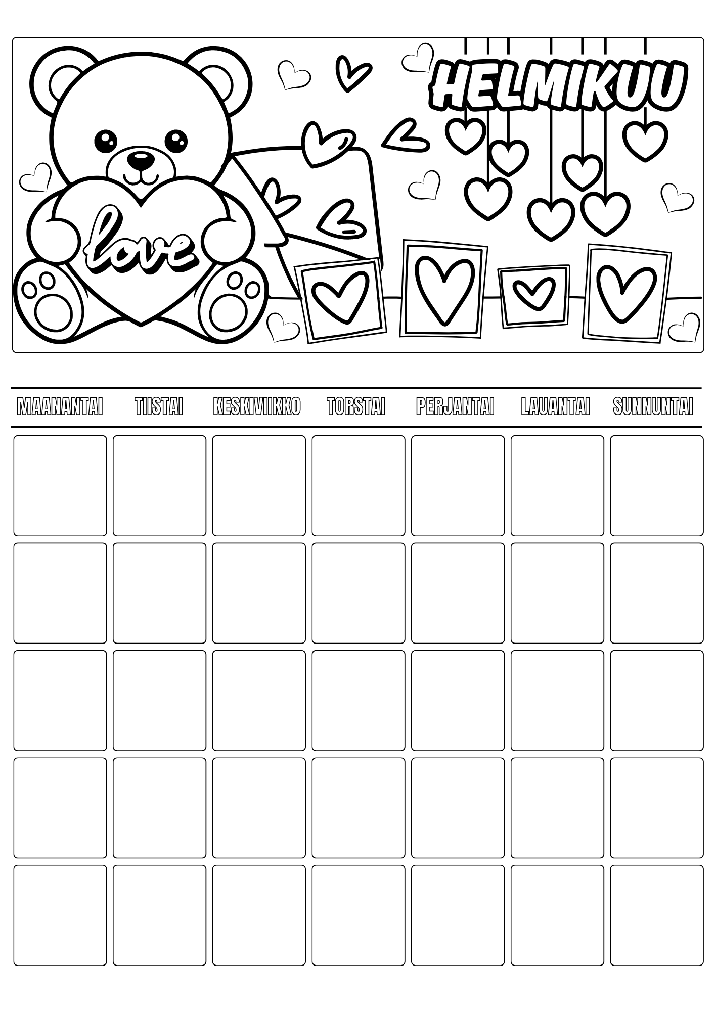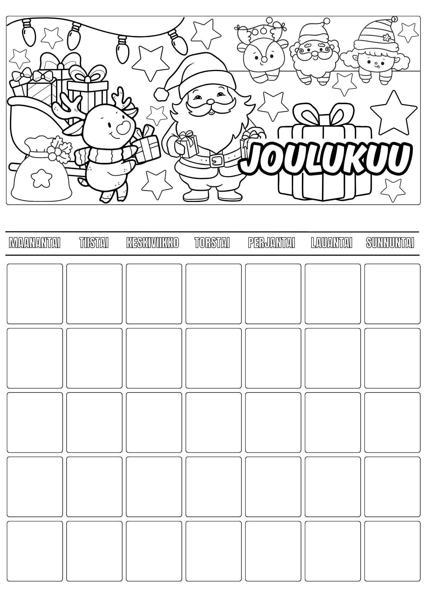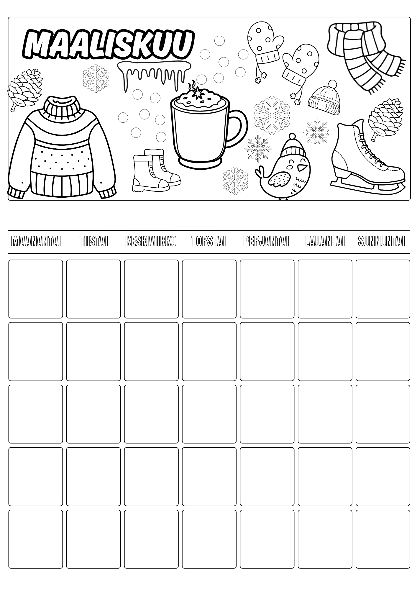 Lasten väritettävä kalenteri – koko vuosi väritettävää iloa (A4 PDF)