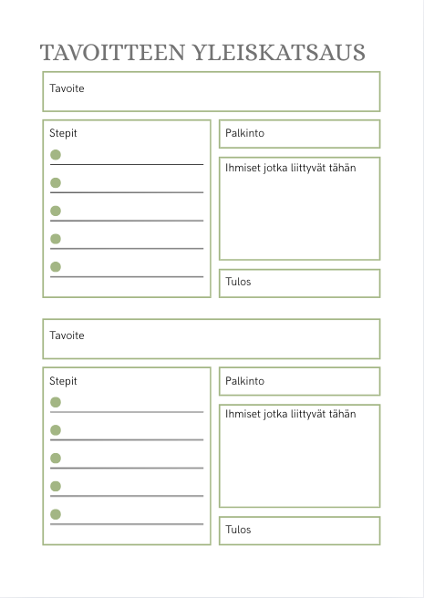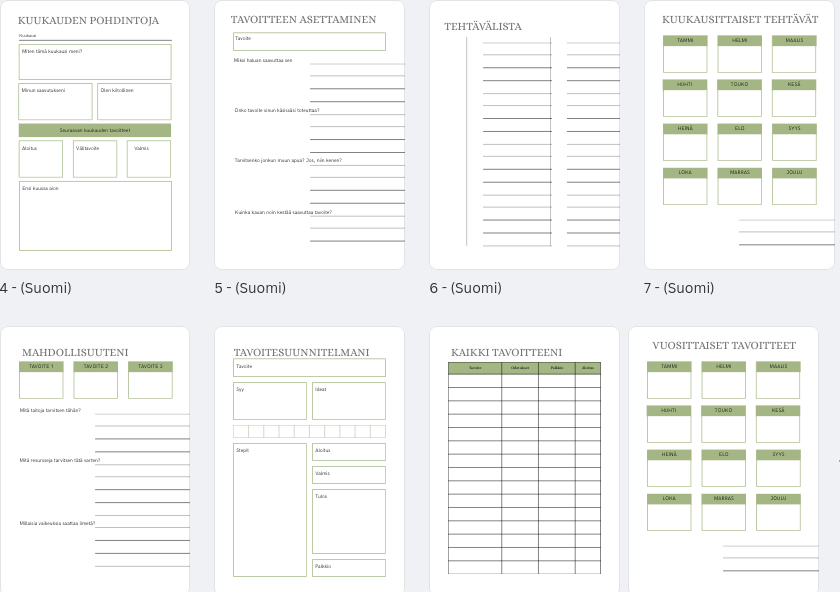 ✔️ Vuosittaiset ja kuukausittaiset tavoitteiden seurantalomakkeet